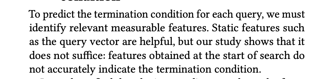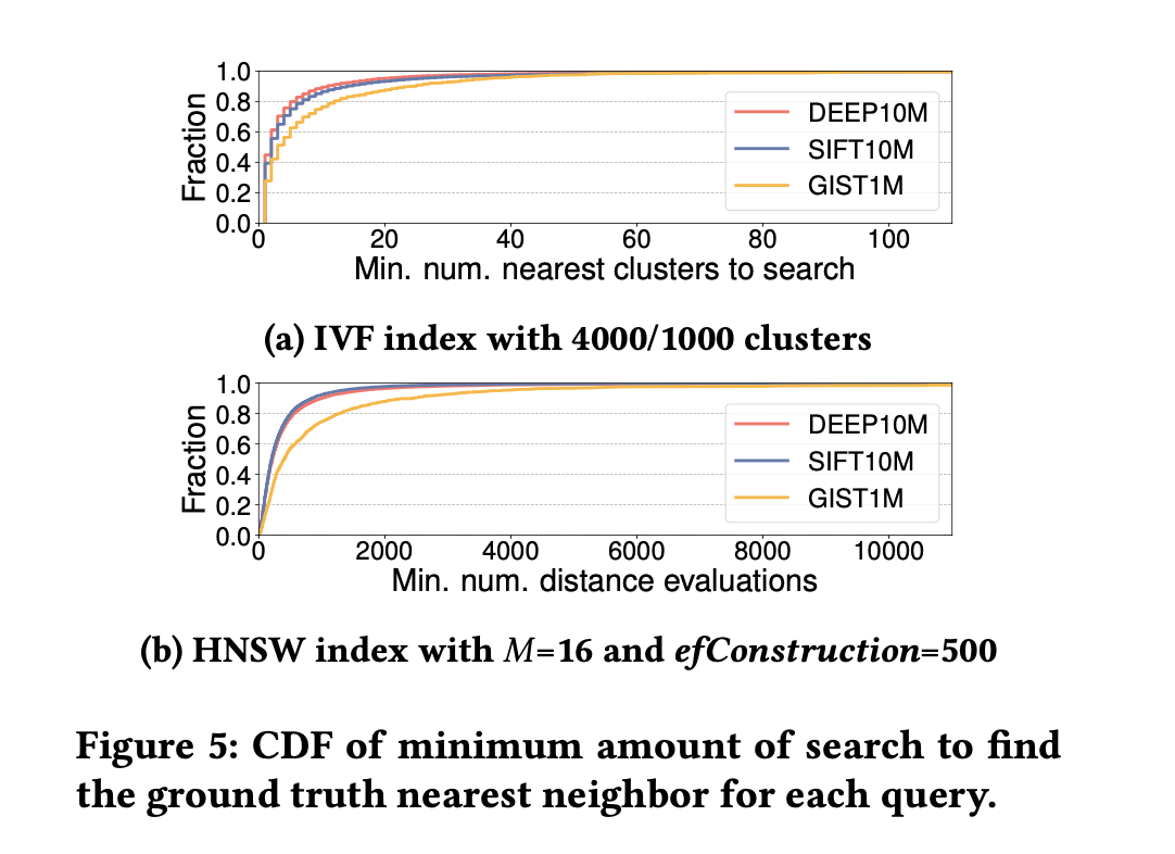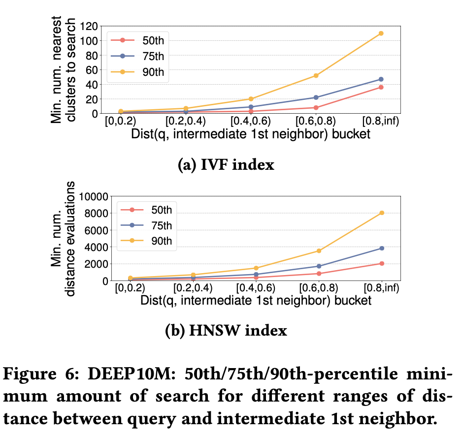 实验可以看到,中间结果top1与query距离越大,是越有可能有更大的“最小搜索次数”的。直观的解释:“if your search result is still far away from the query, you probably want to search more”。